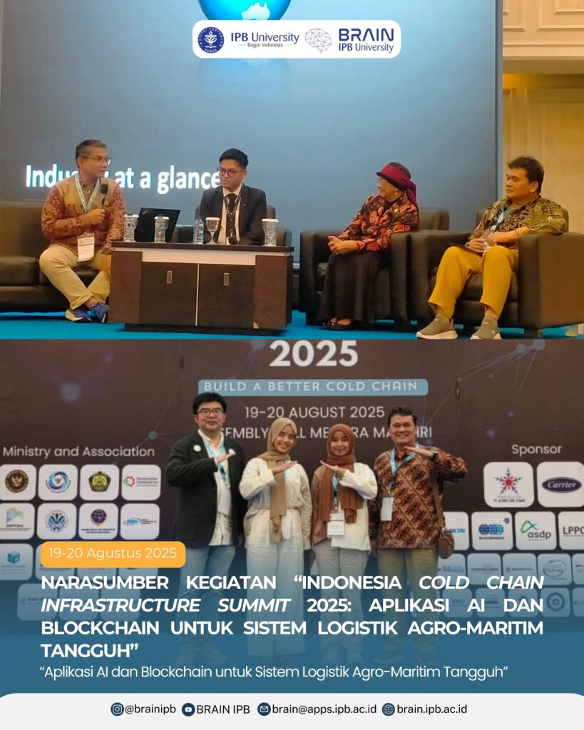 Prof. Dr. Ir. Yandra Arkeman, M.Eng selaku Chairman of BRAIN IPB University dan Kepala Agromaritim Logistik IPB University, hadir sebagai narasumber dengan judul pemaparan “Aplikasi AI dan Blockchain untuk Sistem Logistik Agro-Maritim Tangguh”.