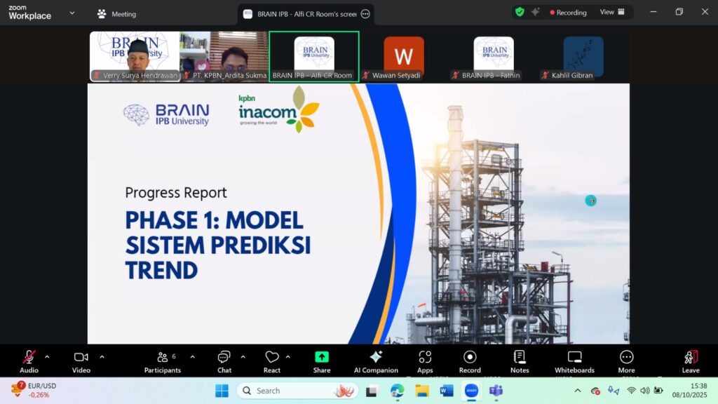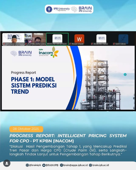 Pada 08 Oktober 2025, Tim BRAIN IPB melakukan progress report pekerjaan Intelligent Pricing System CPO berbasis AI bersama BUMN PT KPBN (INACOM).